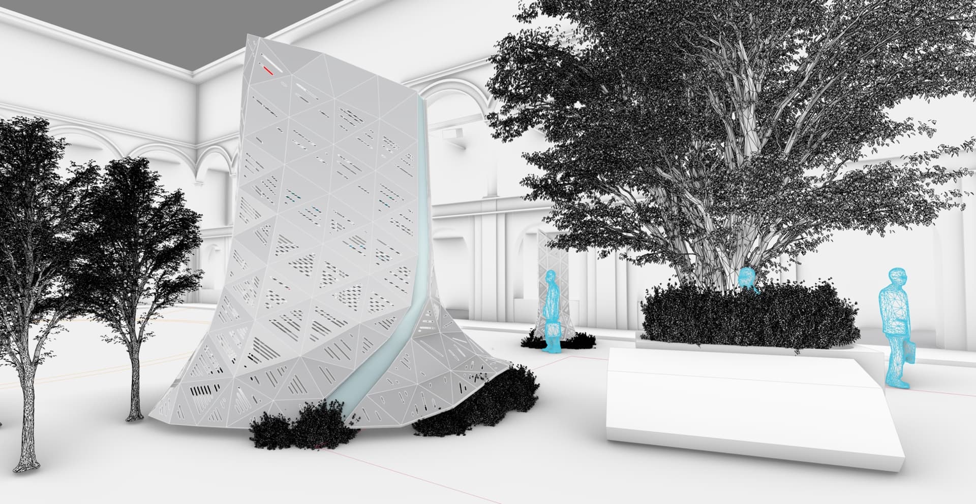 L’insieme dei due elementi che compongono Urban Lounge, la torre di purificazione aria EcoAir Tower e il nebulizzatore di acqua, si integrano armoniosamente con un albero di Magnolia, testimoniando come la tecnologia possa aiutare ad acquisire una nuova prospettiva sulla natura, integrandosi e completandosi con essa.